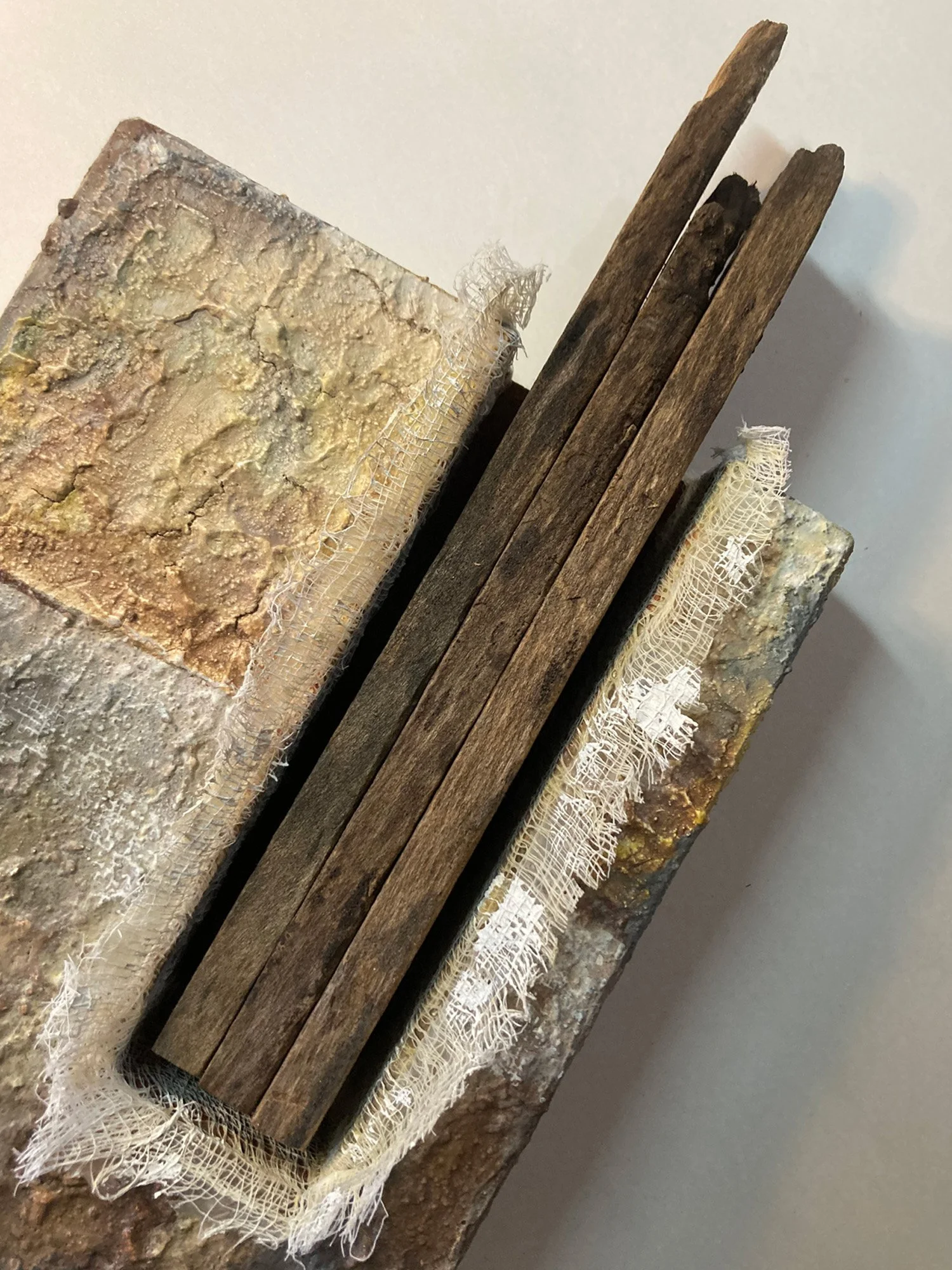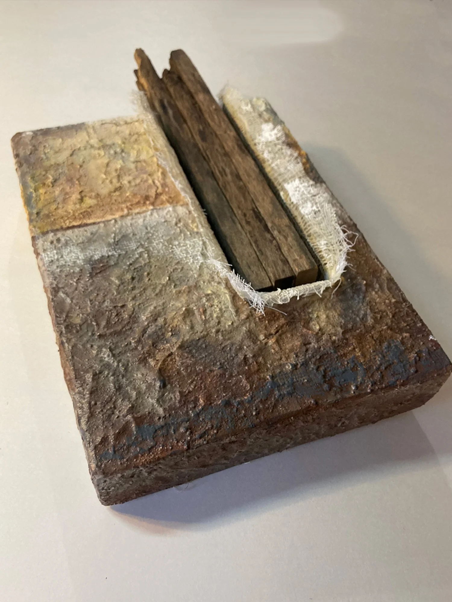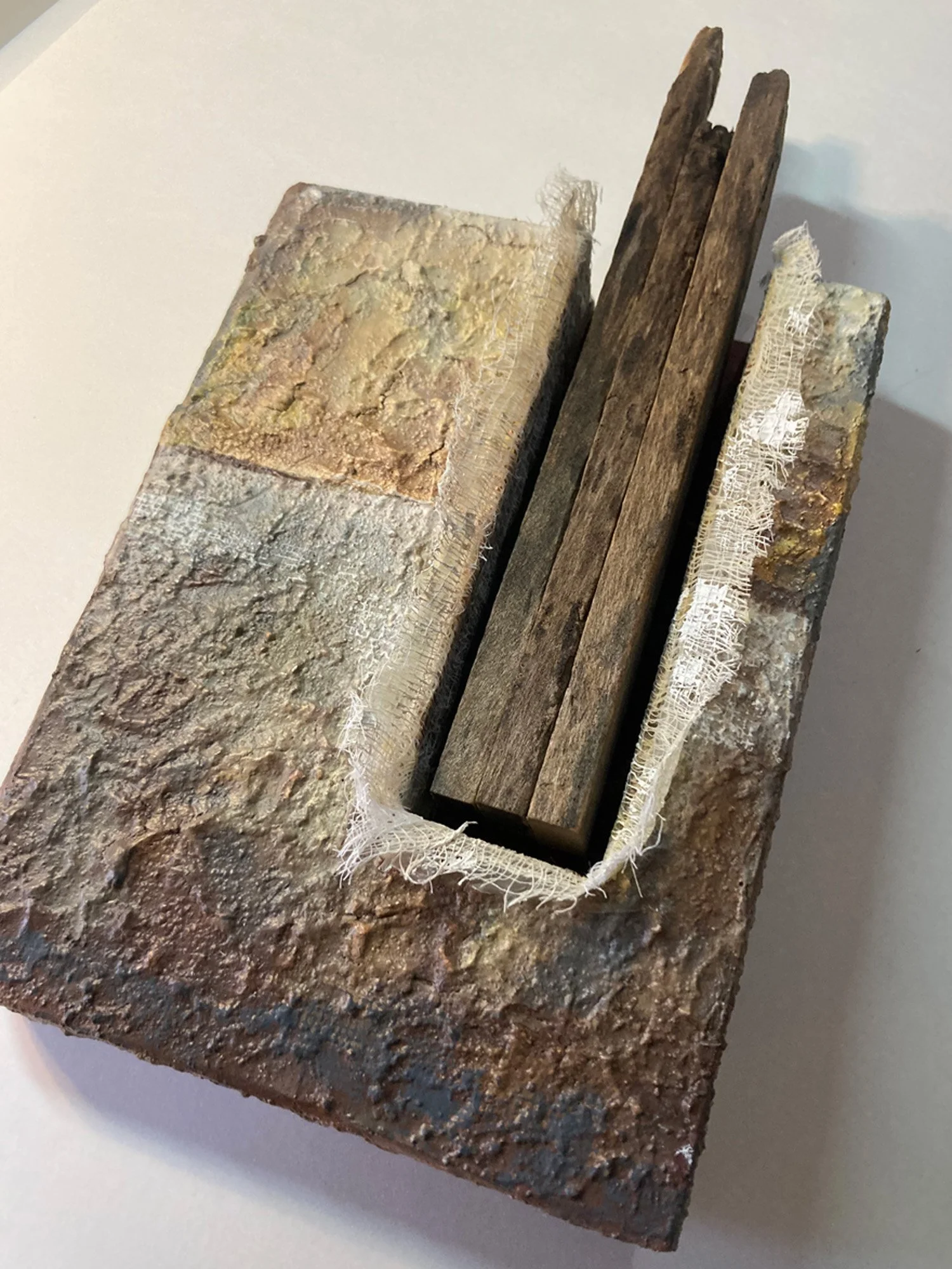 6” x 12” x 3” Wood, Fabric, Textured Acrylic Paint $ 155