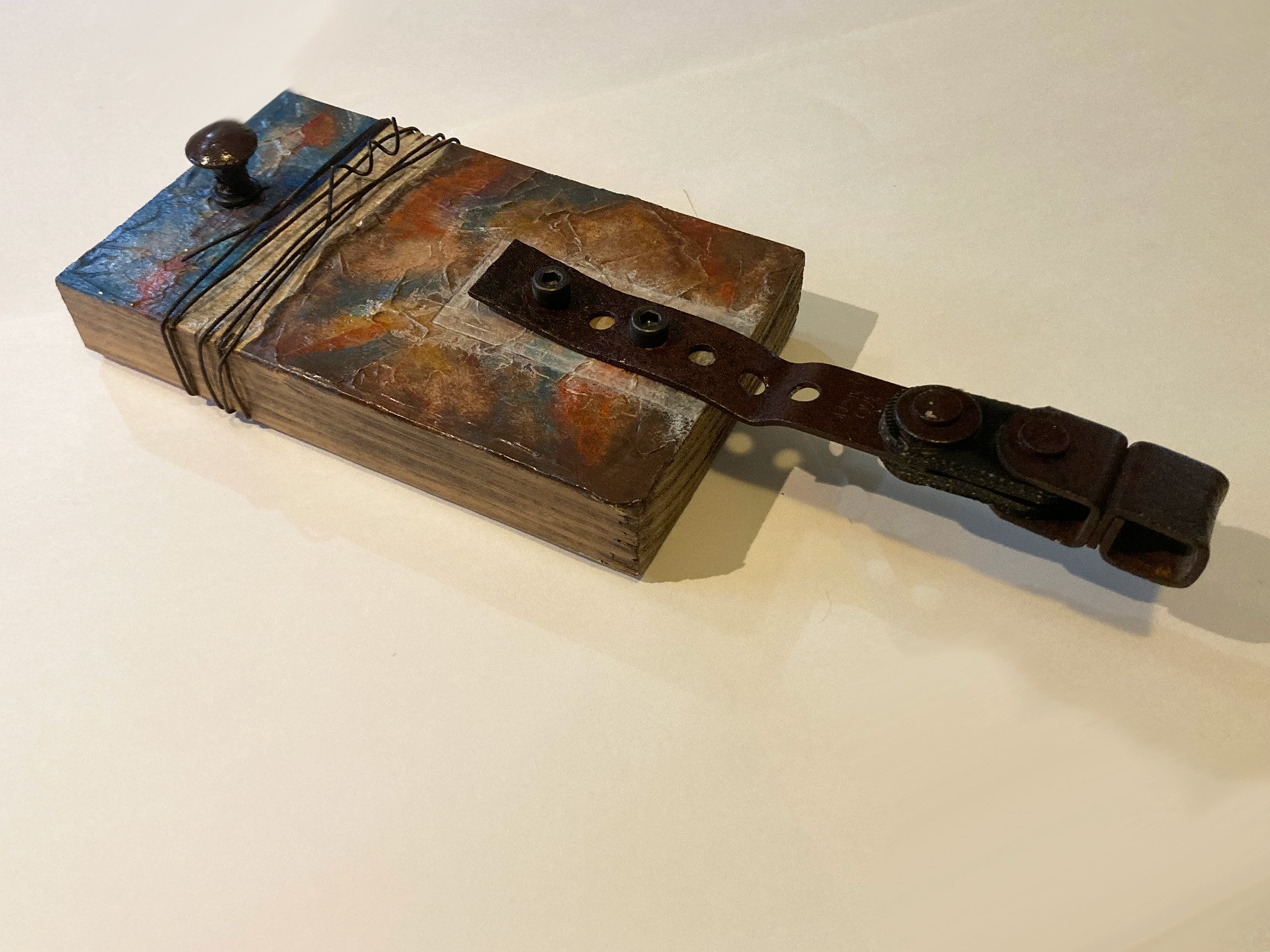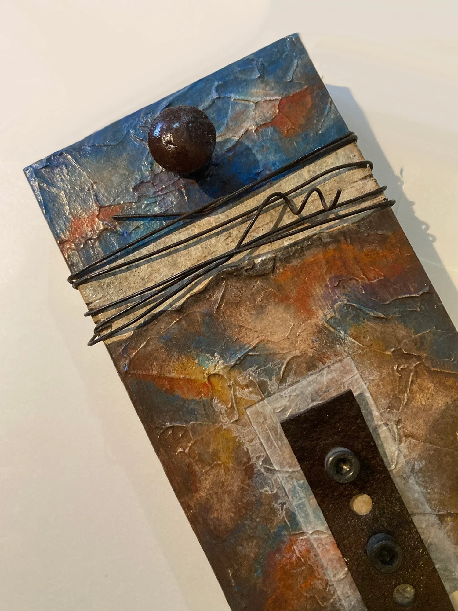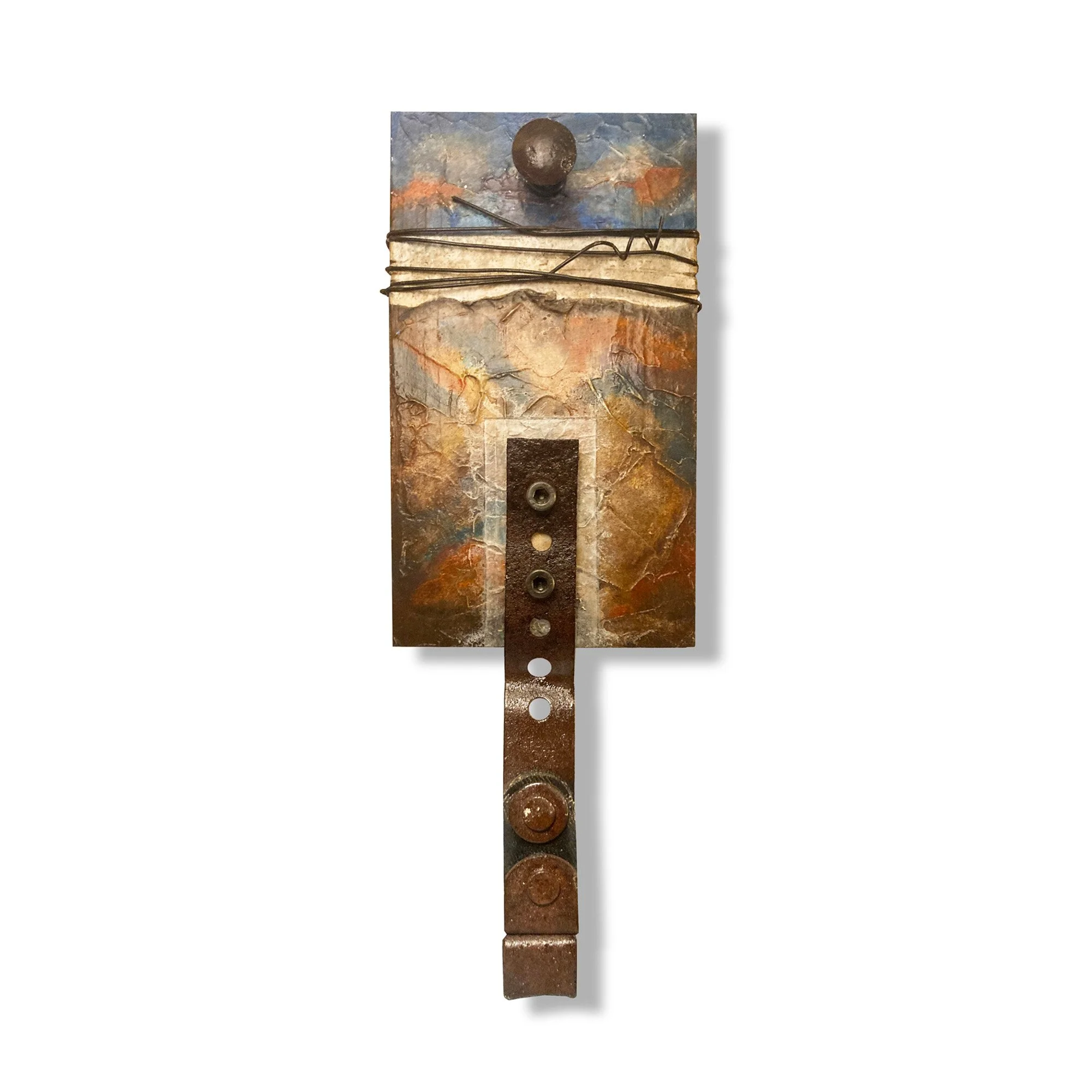 6” x 15” x 3” Wood, Fabric, Wire, Textured Acrylic Paint $ 155